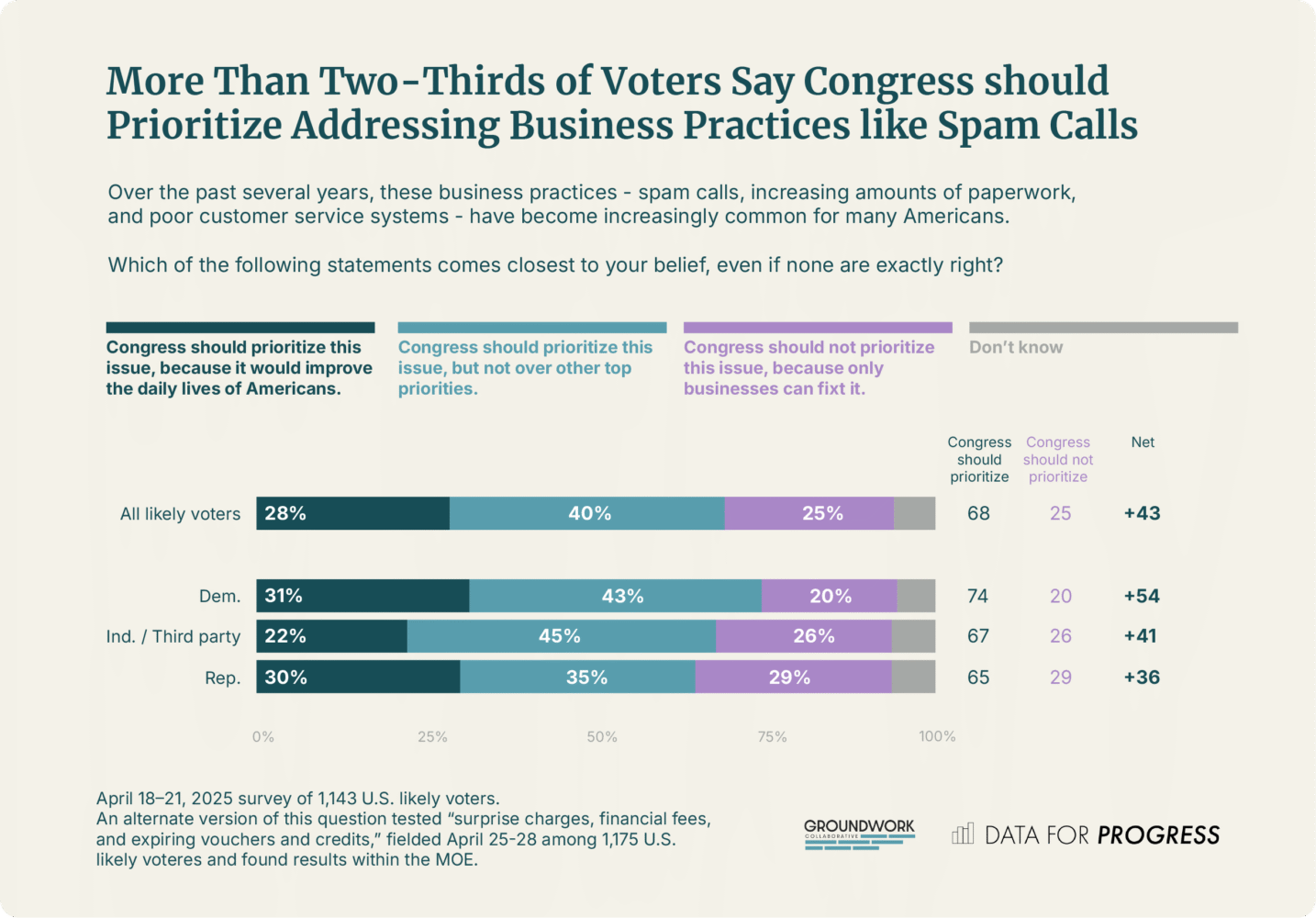 [14] Data for Progress, “Business Practices Impacting Americans’ Time: A Survey Analysis,” Report, 2025. https://www.filesforprogress.org/datasets/2025/4/dfp_gwc_frustrating_business_practices.pdf.