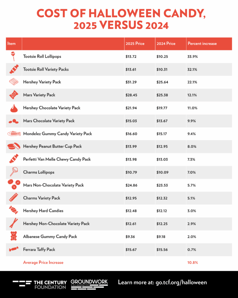 As kids prepare their costumes and families stock up on candy, new analysis from Groundwork Collaborative and The Century Foundation finds that Halloween will be more expensive this year under Trump—with prices for candy up 10.8 percent compared to last year, nearly four times overall inflation. Beyond candy, President Trump’s tariffs are hiking prices for seasonal decorations and costumes, 85 percent of which are made in China.
